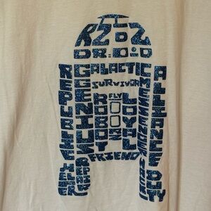 Custom Star Wars R2D2 droid word tee printed on unisex Bella canvas shirt. Worn and washed once.