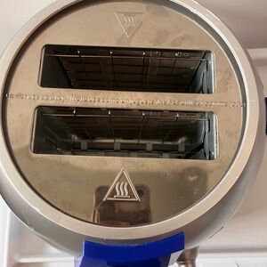 Fun R2-D2 toaster with blue and white design. Perfect for Star Wars fans.