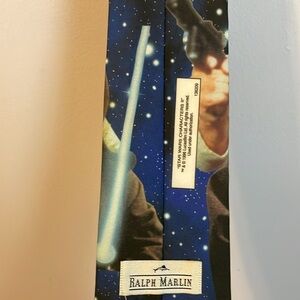 Star Wars Ralph Marlin Vintage 1996 Star Wars Characters II Necktie Tie. Very good preowned condition. Has big characters on front: Luke, Leia, Darth Vader, Obi One, and Hans Solo. Galaxy star print all over. 100% polyester.