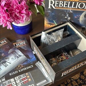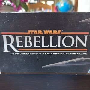 Super cool board game Star Wars rebellion it’s in like new condition on the inside. We never played it because it was just too complicated for us to figure out 😂 We took all the pieces out and set them up, but never played it. The box is a little bit worn but otherwise in great condition.