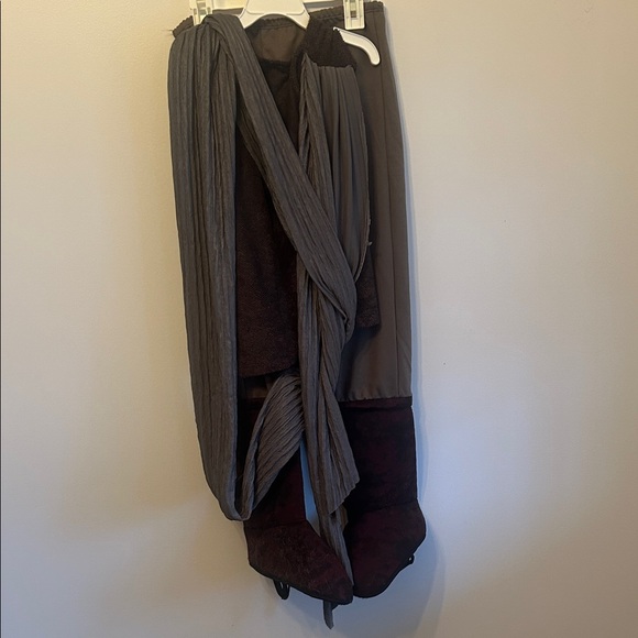 Dress up in this Star Wars Rey costume. Features gray and brown tones. Perfect for Halloween fun. Pants feature boots covers and it comes with accessories as well.