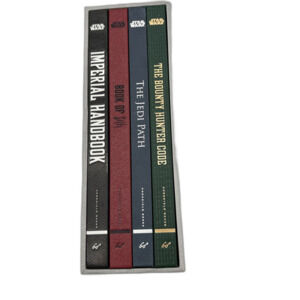 The secrets of the Star Wars galaxy have been recorded in a series of handbooks and guides created and kept hidden by the Jedi Order, the Sith, the Bounty Hunters Guild, & the Empire itself. Set in-world, richly illustrated, & annotated by characters such as Luke Skywalker, Leia, Boba Fett, Yoda, & Darth Vader, each volume expands Star Wars mythology with details from the inside & deepens readers' experience of the saga. This boxed set collects The Jedi Path, Book of Sith, The Bounty Hunter Code,& Imperial Handbook in a custom slipcase, creating a handy & invaluable library.