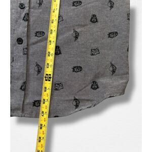 Gray woven short sleeve button-up shirt from Star Wars in kids’ size XL (about 14-16; please check measurements to ensure fit). Lightweight, 55% cotton/45% polyester. In excellent pre-owned condition.