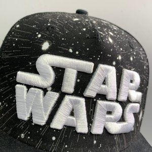 Star Wars snapback hat in black and white. Large embroidered logo. Great condition. One size fits all.