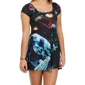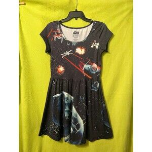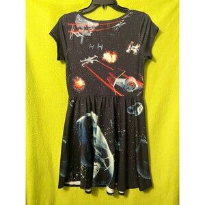 Star Wars Star Fighters Skater Dress Cap Sleeve Black M Mighty Fine Rare