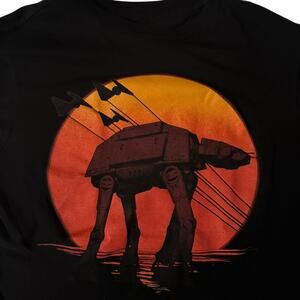 Star Wars T Shirt AT-AT and Tie Fighter Sunset Short Sleeve Small