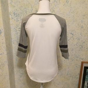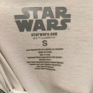 This is a cute Star Wars T-Shirt. It is 3/4 length sleeves, a size small. It measures 23" long, and the measurement across the chest is 17". I see no stains or wear on this t-shirt. Excellent condition.