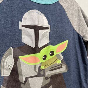 Star Wars The Mandalorian Child Graphic T-Shirt For Kids Raglan Sleeve Grey Blue