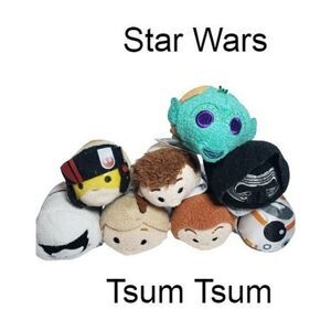 Disney Tsum Tsum Characters Mini Stuffed Plush Star Wars Friends Stuffed Figures 8 piece bundle set.