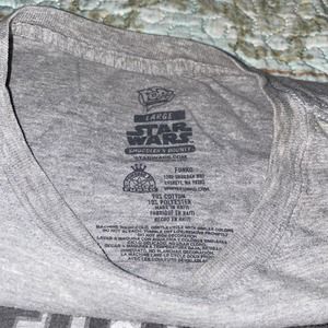 The shirt is in excellent pre-owned condition and is perfect for wearing in any season, whether it's winter, summer, fall, or spring. The gray color and solid pattern make it easy to pair with any outfit, while the Funko Pop! Tees product line ensures its authenticity. Get ready to show off your love for Star Wars with this unique and comfortable t-shirt.