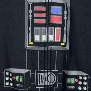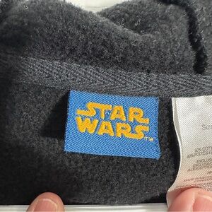 Star Wars Darth Vader youth hoodie in size small (5-6). 60% cotton/40% polyester. Zip up. Hood has a panel that comes down in front with eye holes! Great for a costume for kids who don't love full-on Halloween costumes!