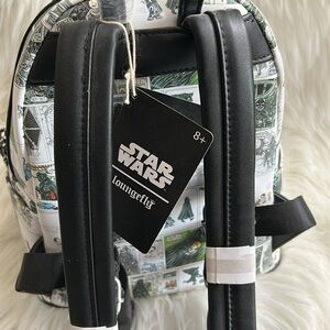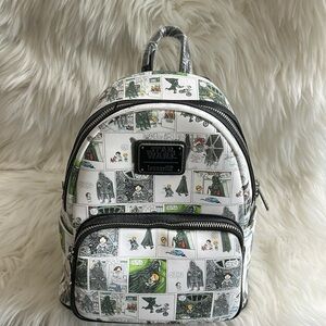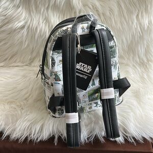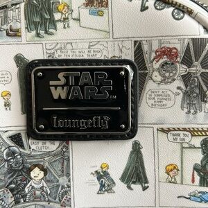 Features Star Wars comic strip design. Front zip pocket. Adjustable straps. Perfect for fans.