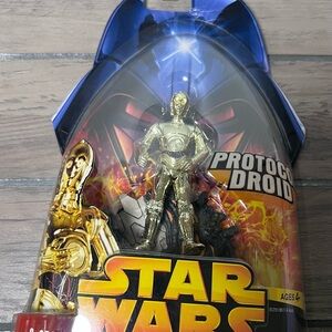 This Vintage 2005 Star Wars “Revenge of the Sith” ~ Protocol Droid is in an unopened original box. This Action figurine is Gold and it comes with his body shell. A great addition for a collector. C-3PO