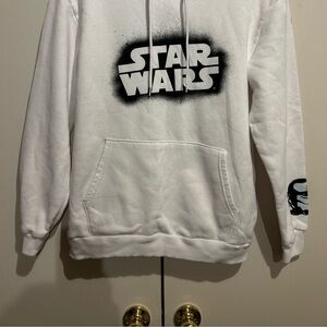 Classic white hoodie featuring bold Star Wars logo. Comfortable and stylish for any fan.