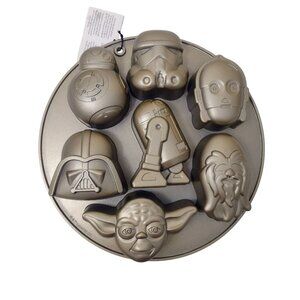 Item is new with tags & in a smoke free environment. This is a very nice mini cake pan with 7 of your favorite Star Wars characters. Pan measures 12" wide x 2" tall.