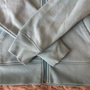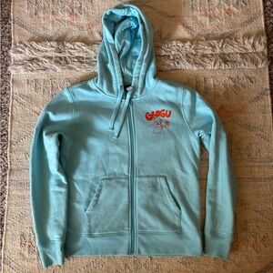 Cute Star Wars/Mandalorian hoodie with Grogu/Baby Yoda design at left breast. Light, icey blue color with orange-red graphic. Great used condition. Some faint pilling throughout. Inside fleece is still quite soft. 21” pit to pit and 24” shoulder to bottom.