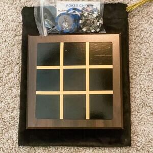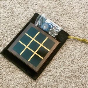 Wooden magnetic tic-tac-toe board with magnetic Star Wars themed poker chips perfect for trips to keep entertained. Comes with velvet carry bag with a drawstring close.