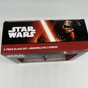 This is a Star Wars Zak 2 Piece Glass Set featuring 16 oz glasses showcasing The First Order and X-wing. The glasses are red in color and are part of the Science Fiction & action genre. This collectible item is not signed and was made in China as part of the Star Wars franchise in 2015. This set would make a great addition to any Star Wars fan's collection, offering a unique and visually appealing way to enjoy favorite beverages while celebrating the iconic series.