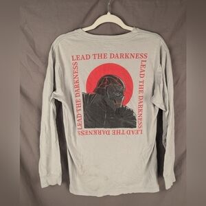 See photo for 3 light brown stains on the back shirt tail. Has the beginning of a loose seam under the arm pit. Comes from a smoke free home.