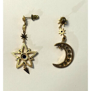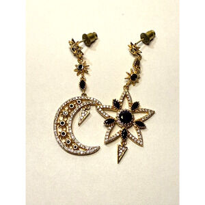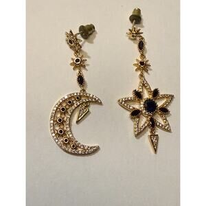 Star and Moon Eye Candy LA Luxe Collection 18K Gold Plated CZ Drop Earrings are in excellent condition.
