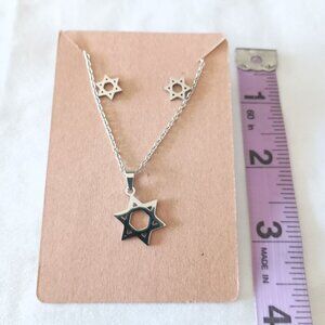 Beautiful Star of David necklace and earring set, crafted from durable stainless steel, new and never used, ships in a ready-to-gift box. This meaningful jewelry set is perfect for everyday wear, spiritual occasions, or as a thoughtful gift for loved ones.