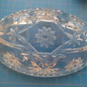 Early American Prescut aka the Star of David pattern produced from the 1960's - 1990's. Oval with scalloped rim and great for home decor, accent , dish for snacks, olives, nuts, etc.