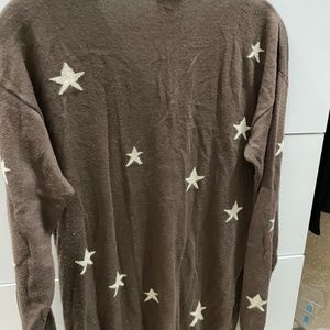 Poem and Thread brown v-neck sweater with cream/of white stars.