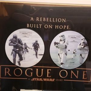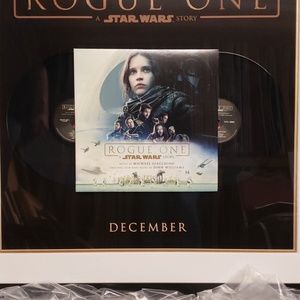 34.5 X 47.5 Star Wars Rogue One Soundtrack. Includes official movie poster and 2 10 inch vinyl picture disc. Exclusively from WonderCon along with both 12 inch vinyl records. The complete soundtrack all in one collectible frame
