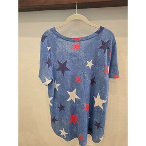 Star-Printed Blue Honeyme Curvy Short-Sleeve Stretch V-Neck Top - Womens Size XL