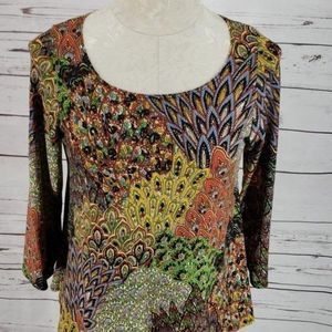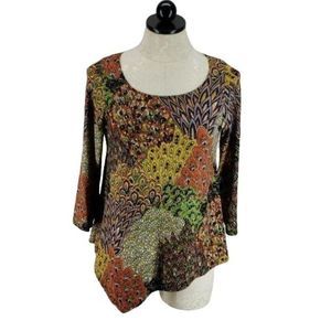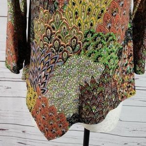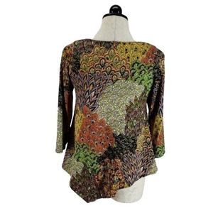 Star Vixen Asymmetrical Peacock small quarter sleeve boho animal print Blouse