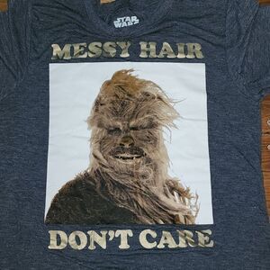 Junior's Star Wars Chewbacca ( Messy hair don't care ) gray T shirt in great condition size MEDIUM (7-9)