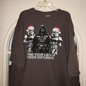 Star wars darth vader christmas shirt size men's 2XL. It is a dark gray color says i find your lack of cheer disturbing worn 1 time great condition.