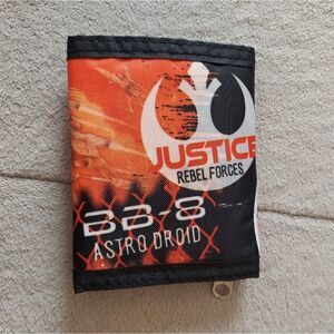 New without tags trifold velcro wallet featuring BB-8 Inside zippered compartment
