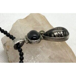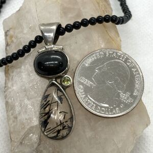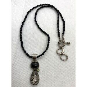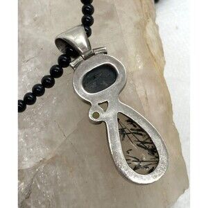 Starborn Rutilated Quartz Pendant 18'' Onyx Bead Necklace Sterling Silver 17g