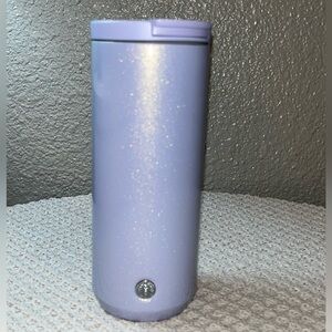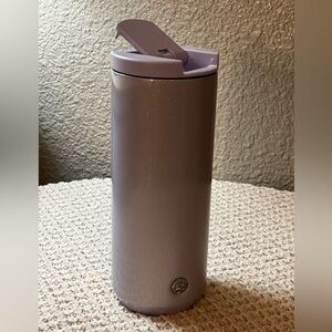 I tried my best to capture the true color of this travel cup. It is a light purple/lavender with sparkle. Used a short time.