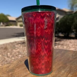 Starbucks 16oz Valentine's Red Tumbler Drink Cup with Lid and Straw 2022 Hearts