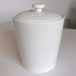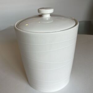Ceramic canister in great condition, no chips or cracks. Raised line pattern exterior. From 2004