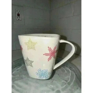 Starbucks 2005 Whimsical Holiday Square Coffee Mug Cup Snowflakes Stars 10 Oz