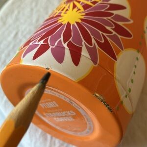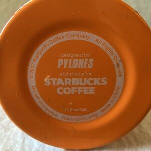 Starbucks: 2007 Pylones Push Button Thermos/Tumbler Orange/Pink Flowers- 17 oz