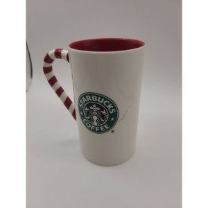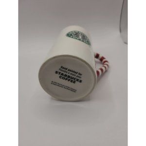 Starbucks 2009 Holiday Coffee Mug Snowflakes And Stripes.