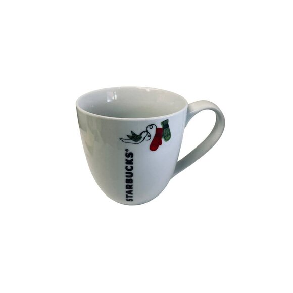 Starbucks 2011 Coffee Tea Mug Cup White Red Green Mittens Bird 12fl oz