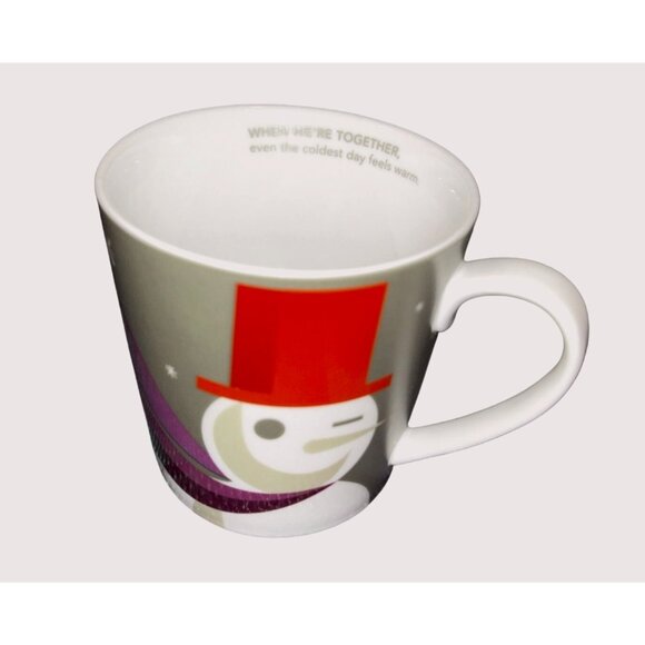 This mug brings a cozy tale of winter with a snowman donning a cheerful red hat and purple scarf. The inside message, "When we're together, even the coldest day feels warm," adds sentimental charm. Its sturdy build and generous size make it ideal for warm beverages on chilly days.