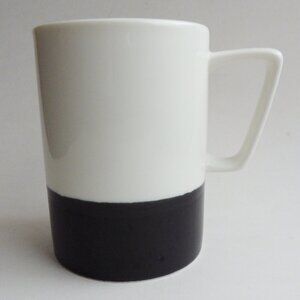 Nice sized mug from Starbucks has a simply design which is mostly glossy white with a matte black section on the bottom 1/4 of the mug