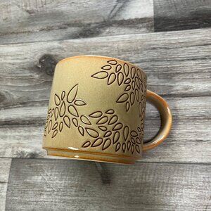 Starbucks 2013 Incised Leaf Stacking Mug Coffee Cup Tea Leaves Cream 14 FL OZ