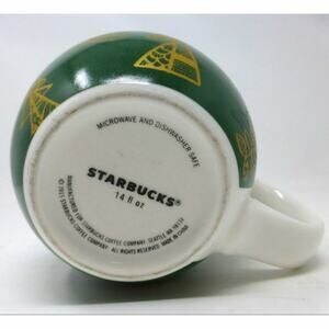 Starbucks 2015 Green Gold Trees Christmas Coffee Mug Cup