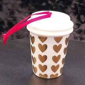 Starbucks Holiday 2015 Collector's Gold Hearts Cup Ornament.