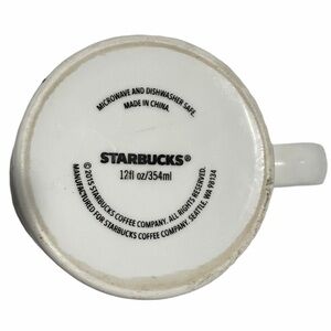 Celebrate the season with every sip using this charming Starbucks 2015 holiday collection mug. Featuring a minimalist white ceramic body adorned with stylized green pine trees and forest motifs, this cup brings a touch of woodland magic to your coffee routine. The vertical "Starbucks" logo adds a classic touch to the modern geometric design. With a 12oz capacity, it is the perfect size for your morning coffee, hot cocoa, or festive tea. A great addition to any Starbucks collection or a cute gift for a nature lover.