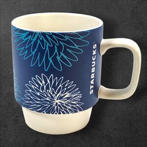 Brighten your coffee time with this beautiful set of three Starbucks stackable mugs featuring the bold blue chrysanthemum (pom flower) design from 2016. These mugs were made in Thailand and have a sleek, modern shape with a white base and vibrant floral graphics that wrap the mug.