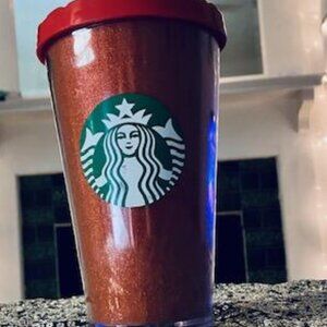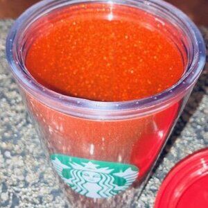 Starbucks 2016 Holiday 16oz Red Glitter Cup with Green and White Straw EUC!!!