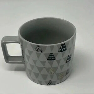 Soft gray, 14 oz. Mug with gold, white, black evergreen tree designs. Very manly mug! No cracks or chips. In EXCELLENT condition!!